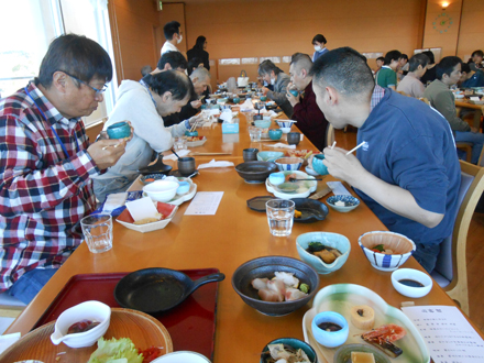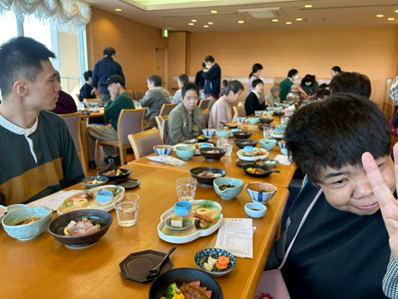 まずは「休暇村」で豪華な昼食をいただきました。お料理を食べると「おいしい!」と声が上がり、にぎやかで楽しい食事の時間になりました![]()